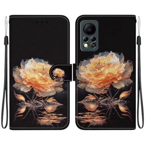Funda de Cuero para Infinix Hot 11S Nfc X6812B con Dibujo Coloreado y Textura de Cristal (Peonía Dorada)