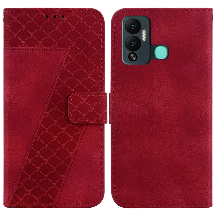 Funda de Cuero En Relieve en Forma de 7 para Infinix Hot 12 Play (Rojo)
