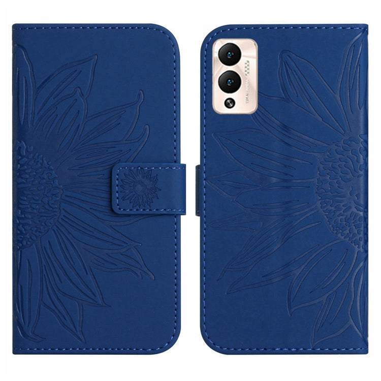 Funda Flip de Cuero para Infinix Hot 12 Play con Cordón y Diseño Sun Flower (Azul Oscuro)