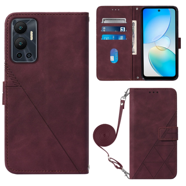 Funda de Cuero Crossbody 3D para Infinix Hot 12 X6817 con Tapa (Rojo Vino)