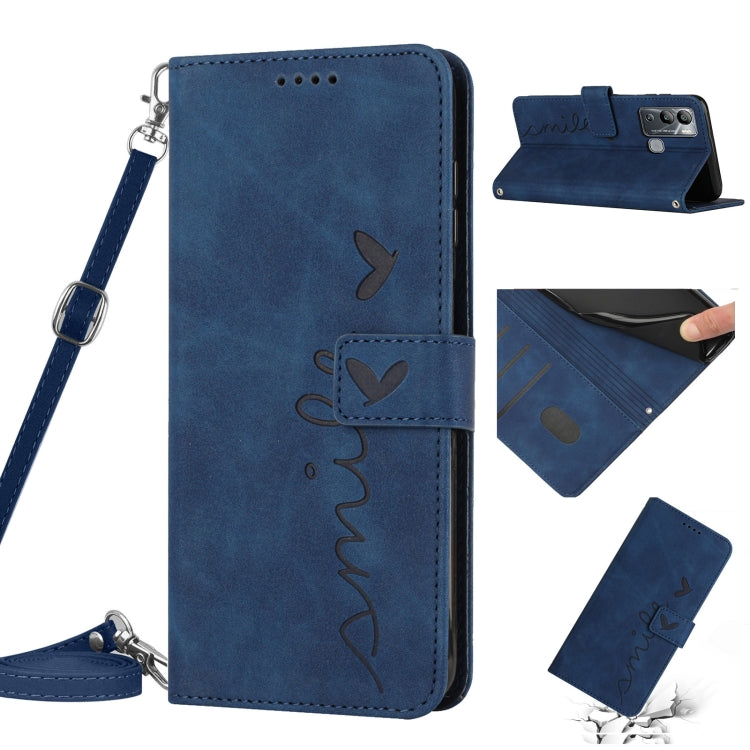 Funda de Cuero para Infinix Hot 12I con Cordón y Diseño Heart Pattern (Azul)