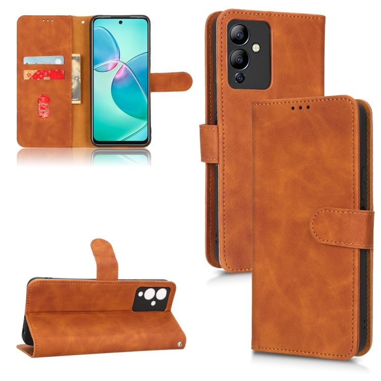 Funda Flip de Cuero Magnética para Infinix Hot 12I Skin Feel (Marrón)