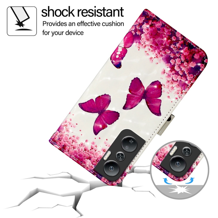 Funda de Cuero con Tapa Horizontal para Infinix Hot 20 4G Pintura 3D (Mariposa Rosa)