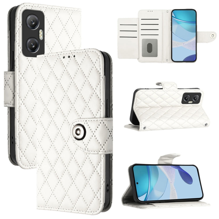 Funda de Cuero para Infinix Hot 20 5G con Tapa, Textura Romboidal y Cordón (Blanco)