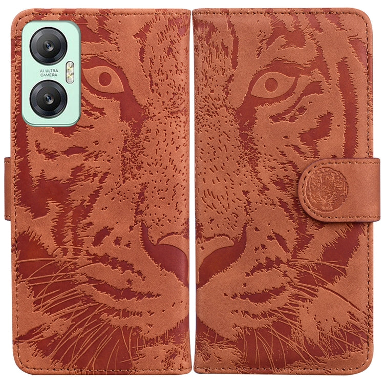 Funda de Cuero para Infinix Hot 20 5G con Estampado de Tigre en Relieve (Marrón)