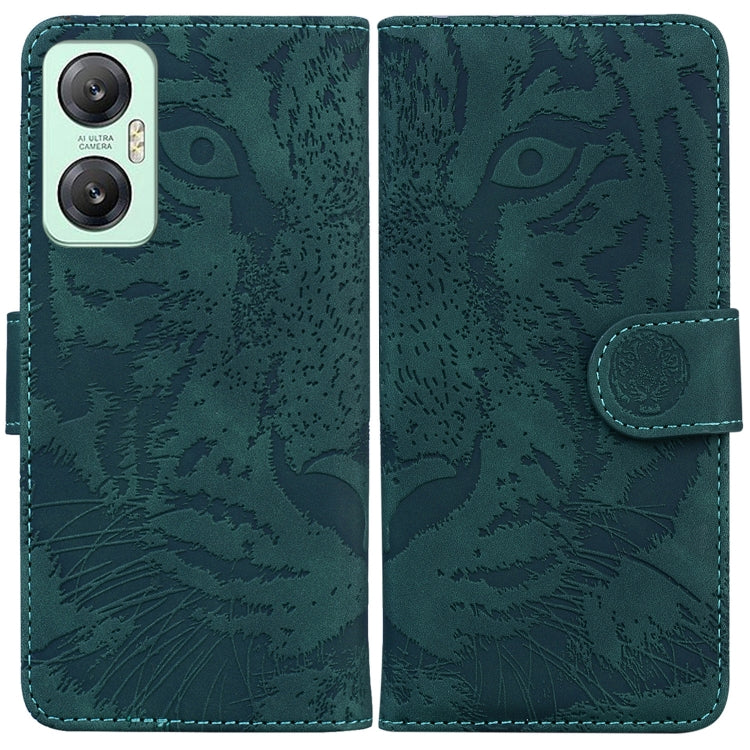 Funda de Cuero para Infinix Hot 20 5G con Estampado de Tigre en Relieve (Verde)
