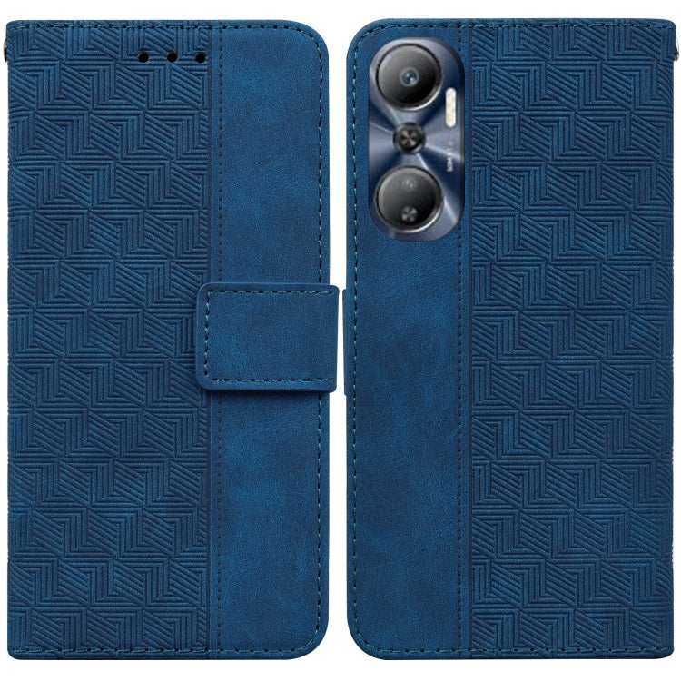 Funda de Teléfono Infinix Hot 20 Cuero con Relieve Geométrico (Azul)