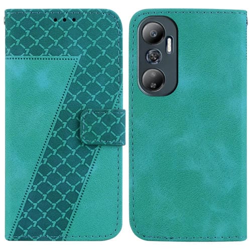 Funda de Cuero para Infinix Hot 20 en Relieve Forma de 7 (Verde)