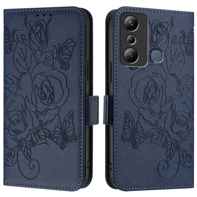Funda de Cuero Antirrobo Rfid para Infinix Hot 20I con Rosa en Relieve (Azul Oscuro)