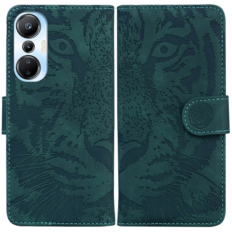Funda de Cuero para Infinix Hot 20S con Estampado de Tigre en Relieve (Verde)