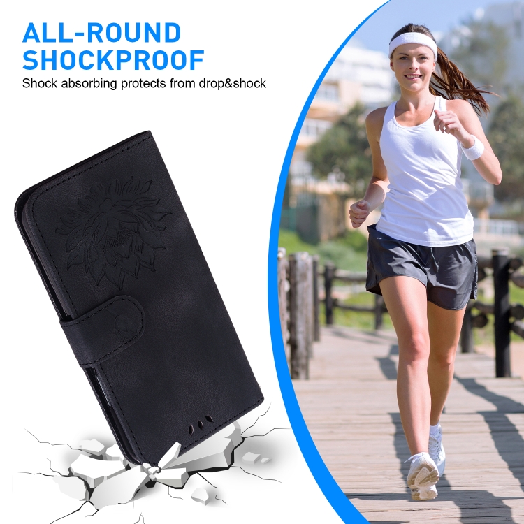 Funda de Cuero para Infinix Hot 30 4G X6831 con Relieve de Loto (Negro)