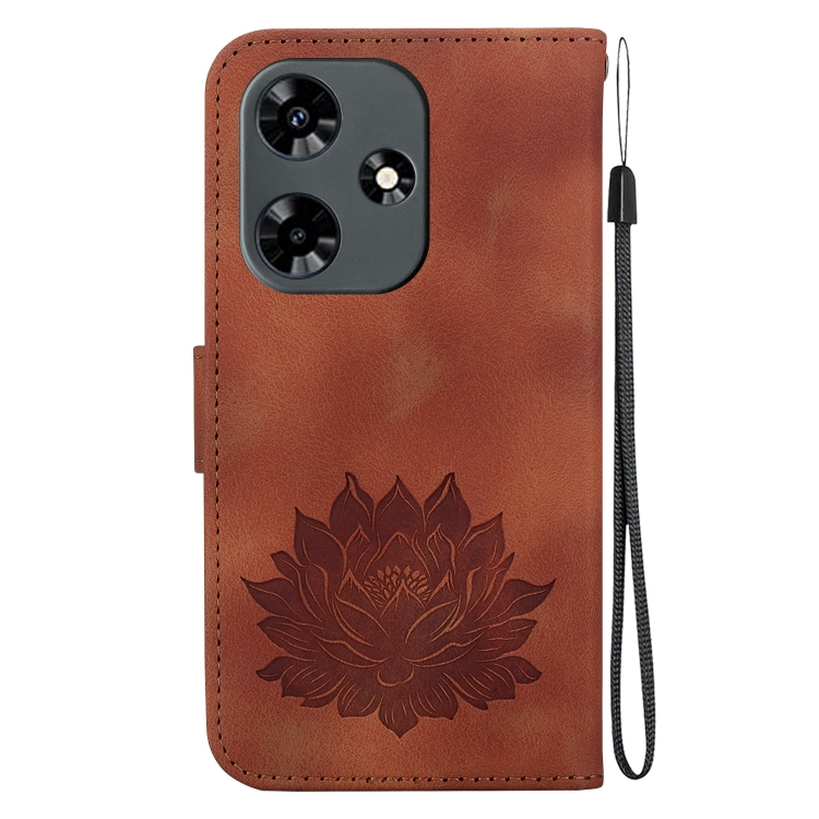 Funda de Cuero para Infinix Hot 30 4G X6831 con Relieve de Loto (Marrón)