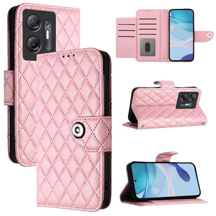 Funda de Cuero para Infinix Hot 30 5G con Tapa, Textura Romboidal y Cordón (Rosa)