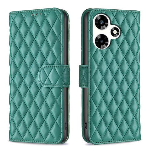 Funda de Cuero Wallet para Infinix Hot 30 Diamond Lattice con Tapa (Verde)