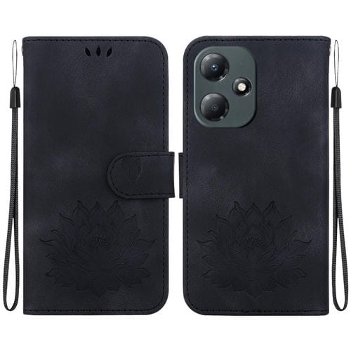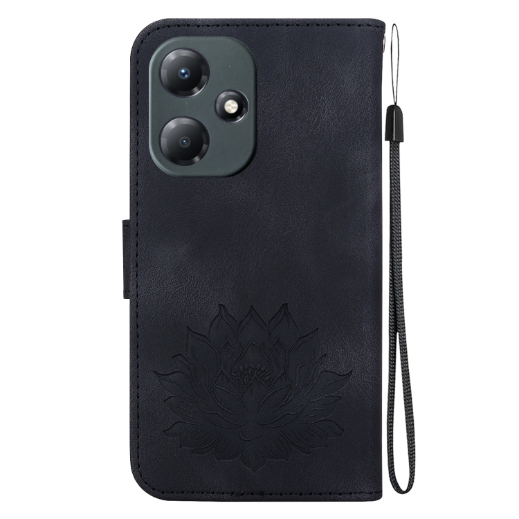 Funda de Cuero para Infinix Hot 30 Play X6835 con Relieve de Loto (Negro)