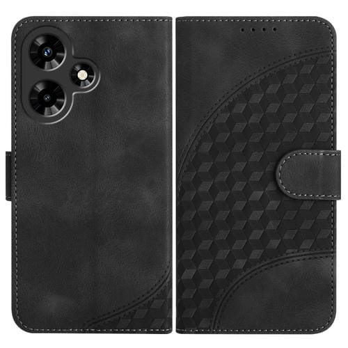 Funda de Cuero para Infinix Hot 30 Yx0060 con Relieve y Cabeza de Elefante con Cordón (Negro)