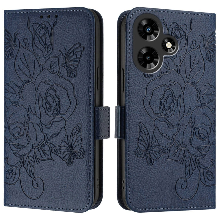 Funda de Cuero Antirrobo RFID para Infinix Hot 30I con Relieve Rosa (Azul Oscuro)