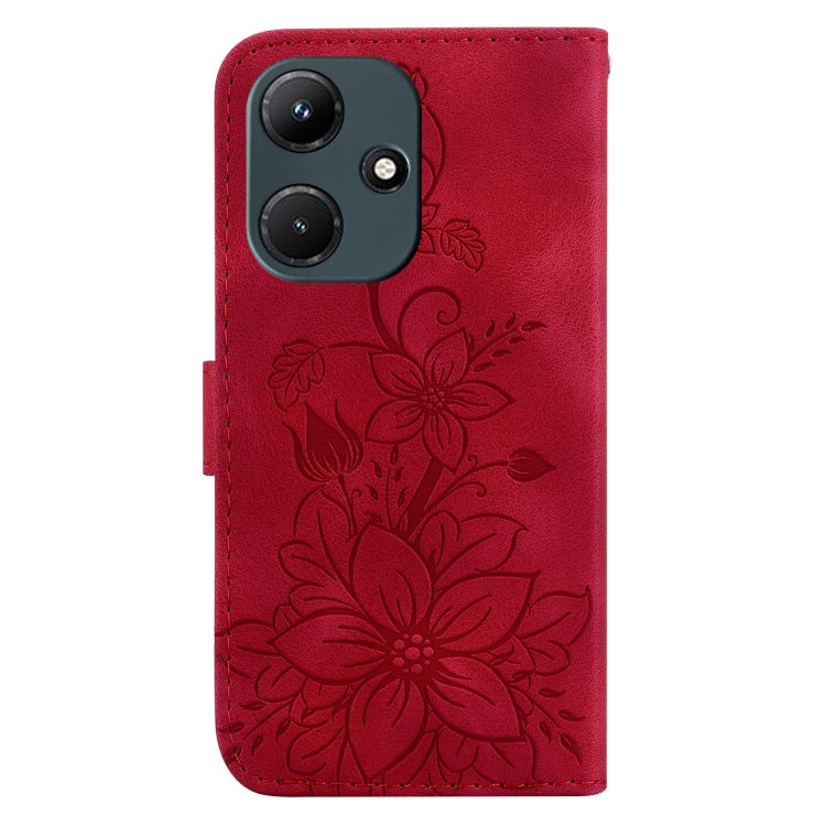 Funda para Teléfono Infinix Hot 30I X669C de Cuero con Relieve Lily (Rojo)