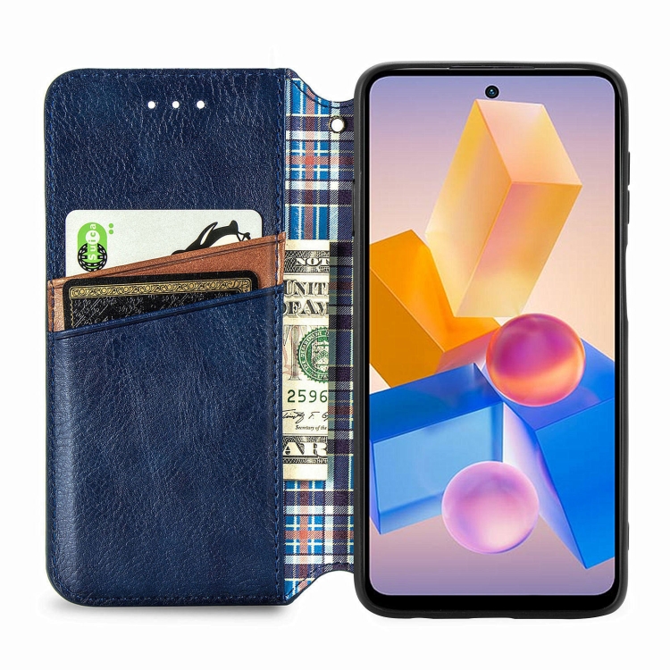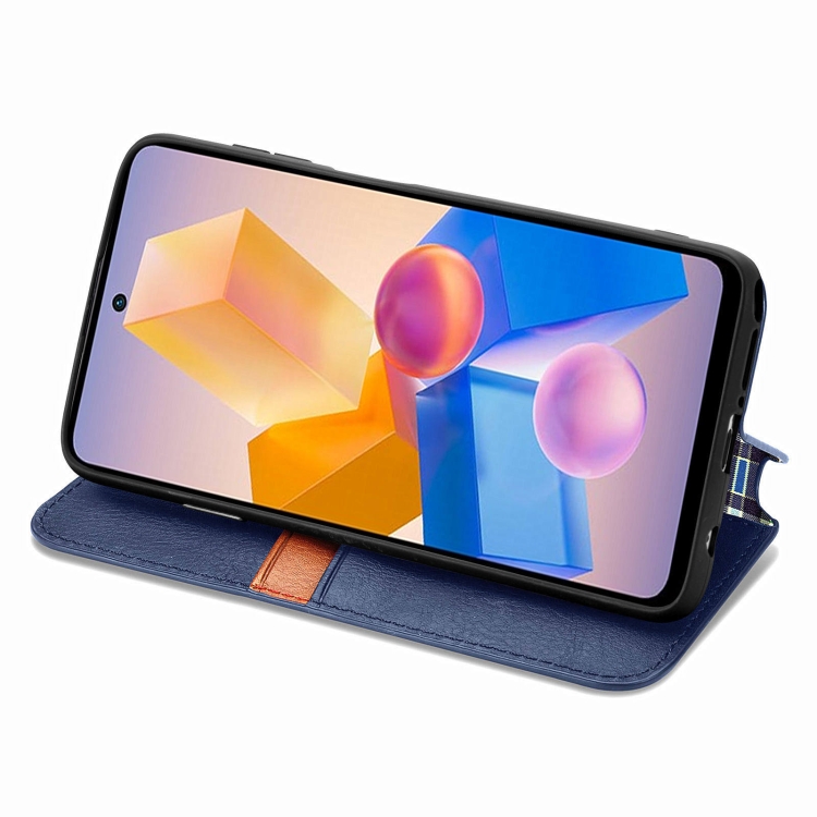 Funda de Teléfono Cuero Magnético Prensado para Infinix Hot 40I Cubic Grid (Azul)
