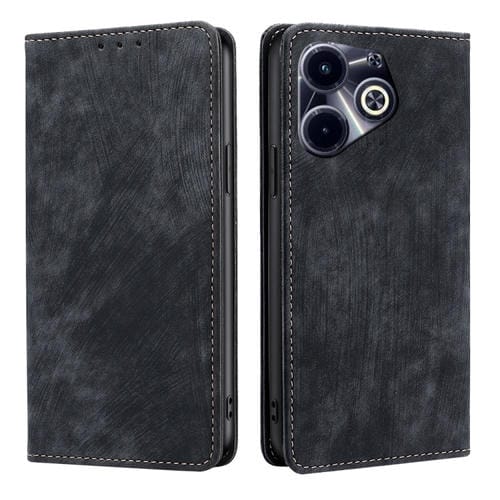 Funda de Cuero Magnética para Infinix Hot 40I con Protección RFID y Cepillo Antirrobo (Negro)