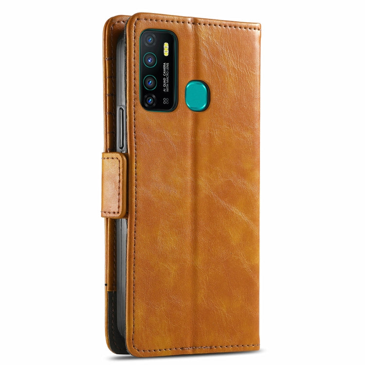 Funda para Infinix Hot 9 Caseno Business Empalme Dual Hebilla Magnética Horizontal Flip PU Cuero con Soporte y Ranuras para Tarjetas (Caqui)