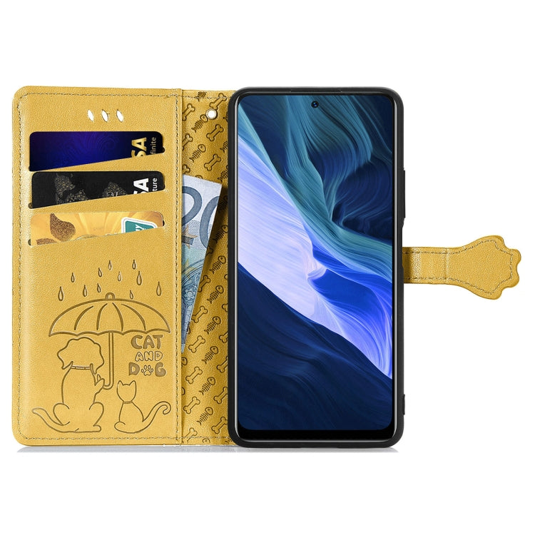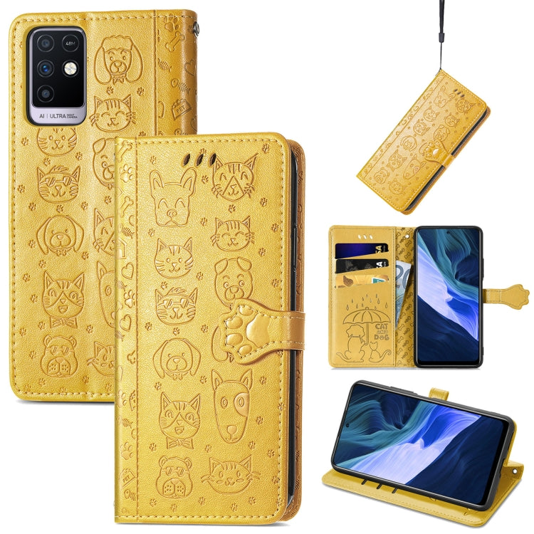 Funda Cuero Infinix Nota 10 Estampado Gato y Perro con Soporte, Tragamonedas y Cordón (Amarillo)