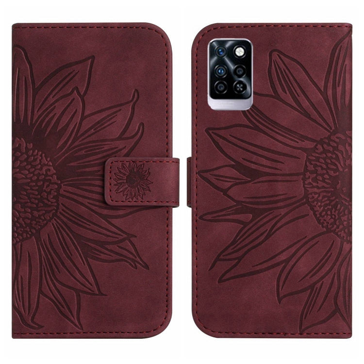Funda Flip de Cuero para Infinix Note 10 Pro Skin Feel con Cordón y Diseño Sun Flower (Rojo Vino)