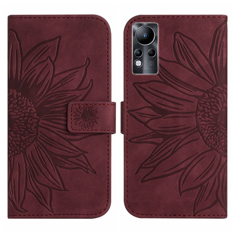 Funda de Cuero Flip con Cordón para Infinix Note 11 Skin Feel Sun Flower (Rojo Vino)