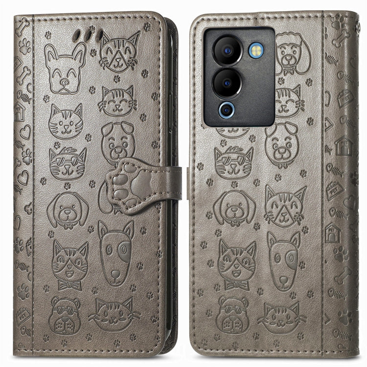 Funda de Cuero para Infinix Note 12 G96 con Diseño Cat and Dog en Relieve (Gris)