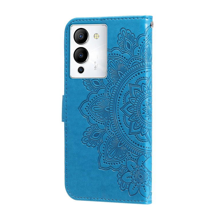 Estuche para Teléfono Infinix Note 12 G96 Cuero Estampado Flores 7 Pétalos (Azul)