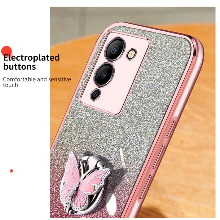 Funda TPU para Infinix Note 12 G96 con Soporte de Mariposa y Brillo Degradado (Azul Sierra)