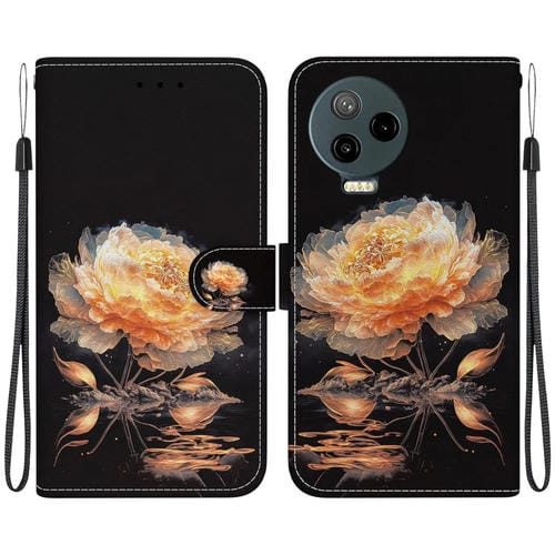 Funda de Cuero para Infinix Note 12 Pro 4G con Dibujo Coloreado y Textura de Cristal (Peonía Dorada)