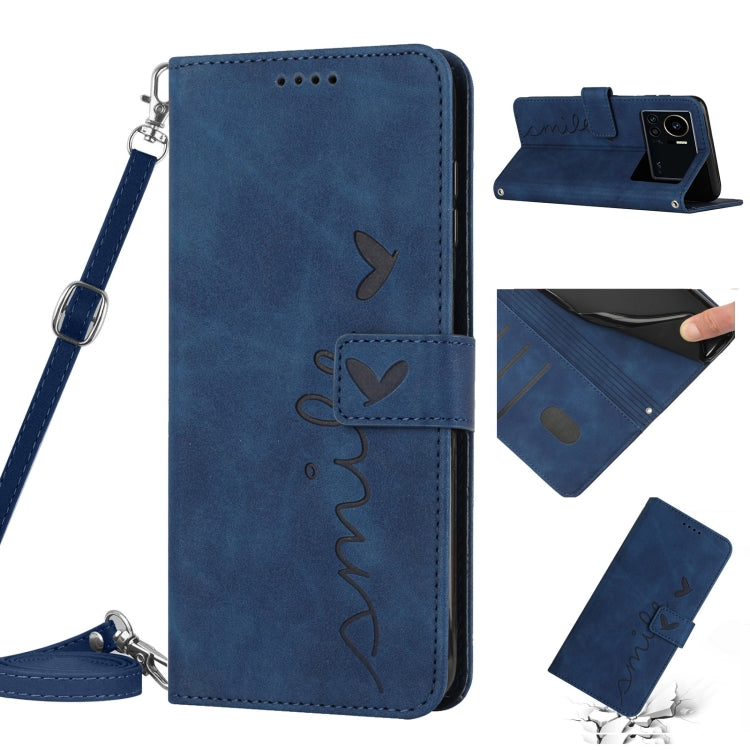 Funda de Cuero con Cordón para Infinix Note 12 Vip Skin Feel Heart Pattern (Azul)
