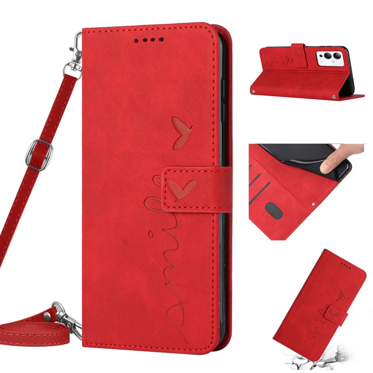 Funda de Cuero para Infinix Note 12I Skin Feel con Patrón Corazón y Cordón (Rojo)