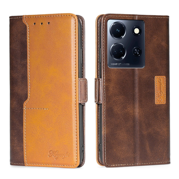 Funda de Cuero para Infinix Note 30 5G con Hebilla Lateral y Color de Contraste (Marrón Oscuro + Dorado)