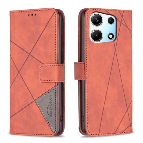 Funda para Infinix Note 30 5G de Cuero con Textura de Rombo y Hebilla Magnética (Marrón)