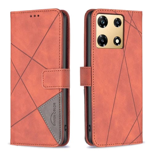 Funda de Cuero para Infinix Note 30 Pro con Textura de Rombo y Hebilla Magnética (Marrón)