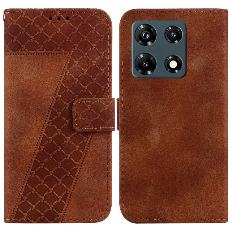 Funda de Cuero En Relieve en Forma de 7 para Infinix Note 30 Pro (Marrón)