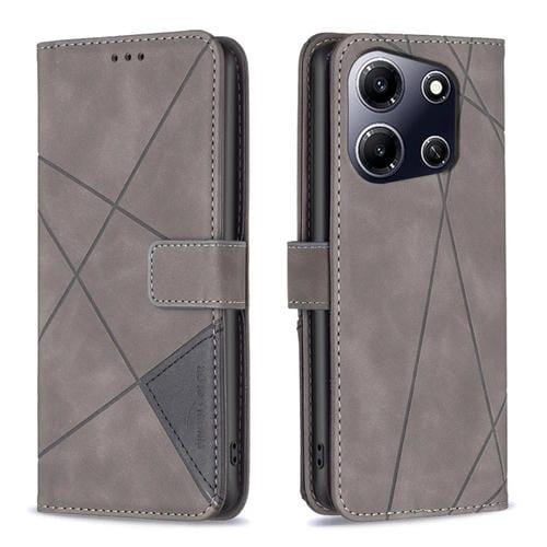 Funda para Infinix Note 30I de Cuero con Textura de Rombo y Hebilla Magnética (Gris)