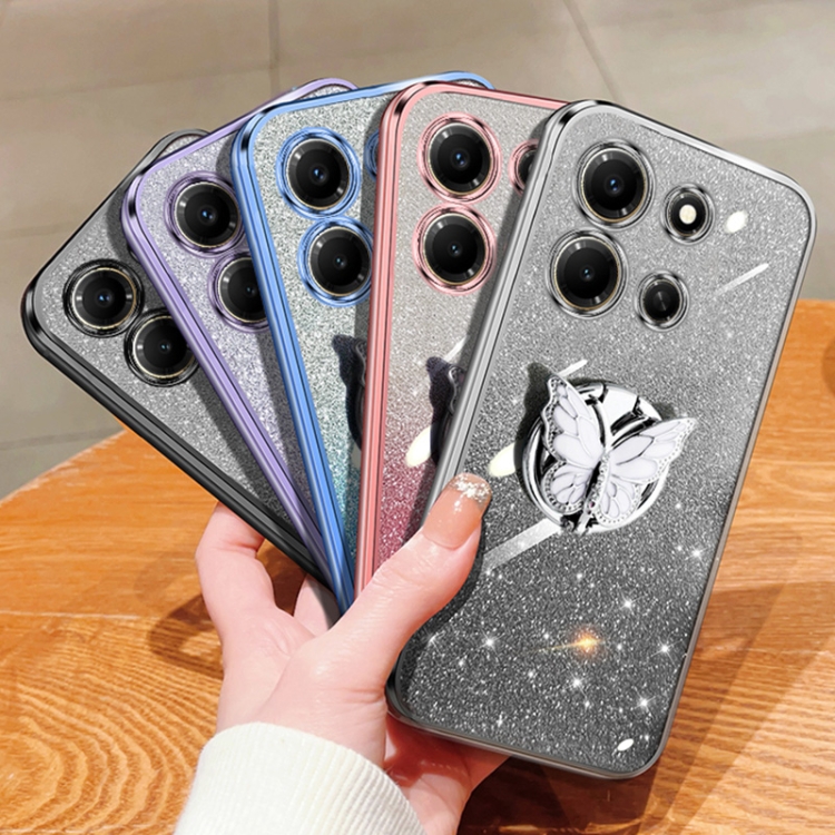Funda TPU para Infinix Note 30I con Soporte de Mariposa y Brillo Degradado (Púrpura)