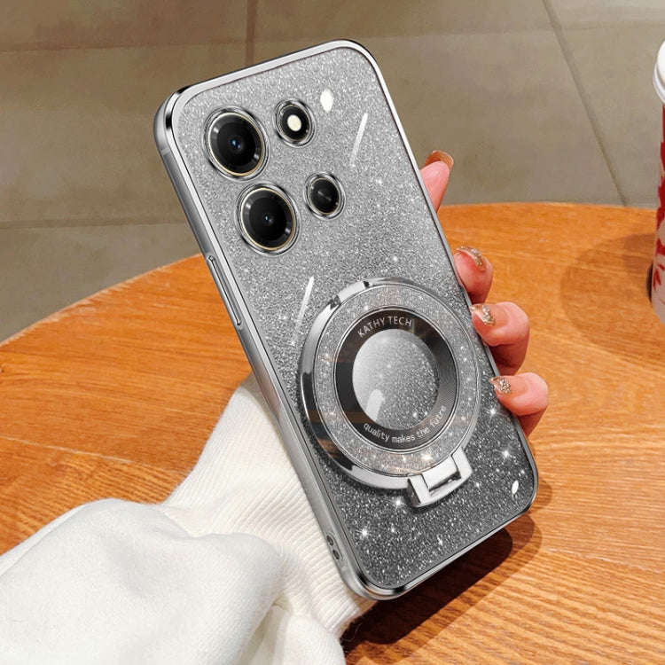 Funda TPU para Infinix Note 30I con Soporte Redondo y Brillo Degradado (Plata)