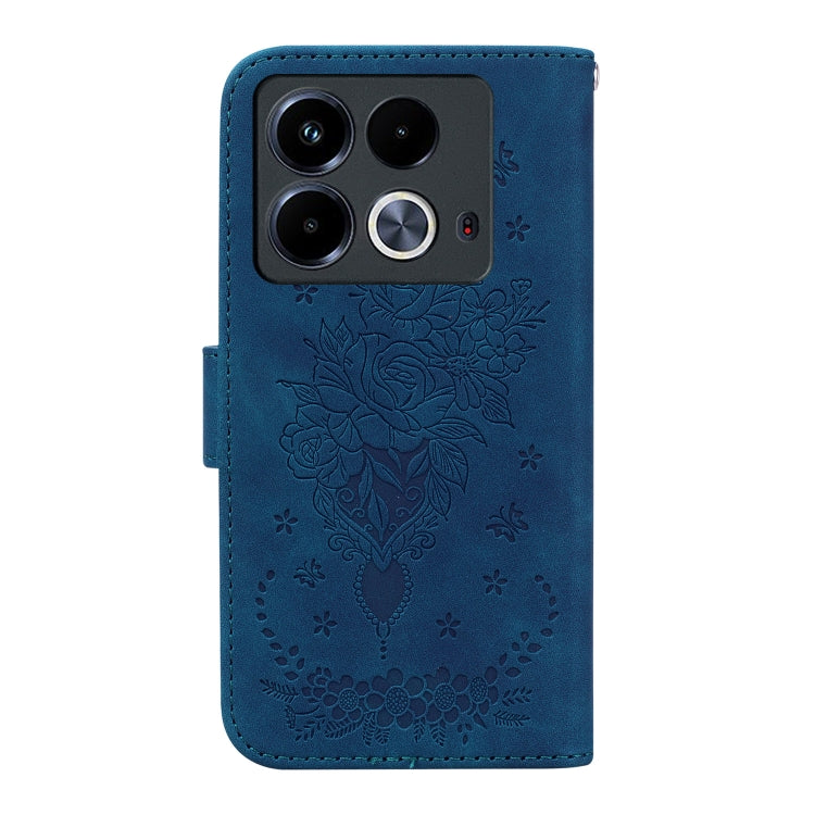 Funda para Infinix Note 40 4G Cuero con Relieve Mariposa y Rosa (Azul)