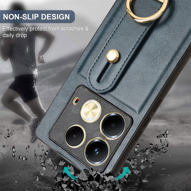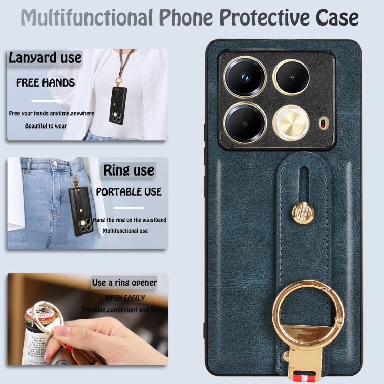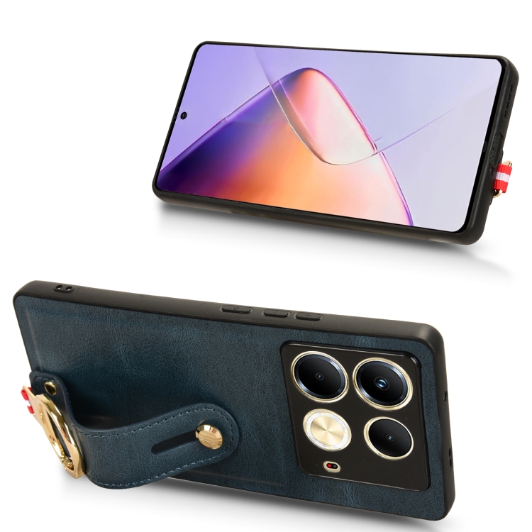 Funda Trasera de Cuero para Infinix Note 40 4G X6853 con Pulsera (Azul)