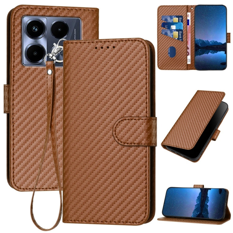 Funda de Cuero para Infinix Note 40 4G Yx0070 con Hebilla de Fibra de Carbono y Cordón (Café)
