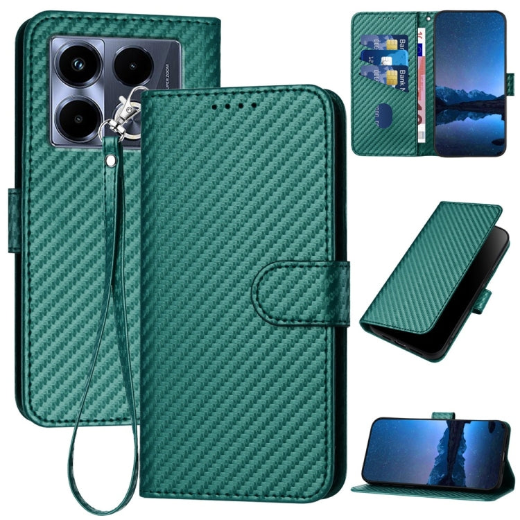 Funda de Cuero para Infinix Note 40 4G Yx0070 con Hebilla de Fibra de Carbono y Cordón (Verde Oscuro)