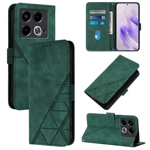 Funda de Cuero para Infinix Note 40 5G Crossbody con Tapa en Relieve 3D (Verde Oscuro)