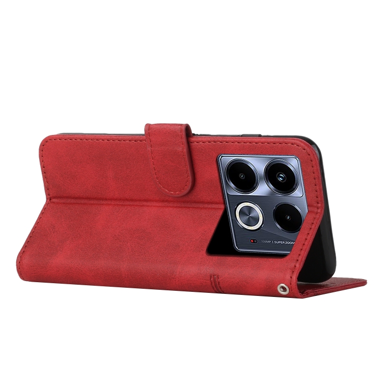 Funda para Teléfono Infinix Note 40 5G Cuero con Hebilla y Textura de Becerro (Rojo)