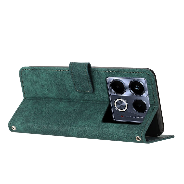 Funda de Cuero Skin Feel para Infinix Note 40 5G con Patrón de Rayas y Cordón (Verde)