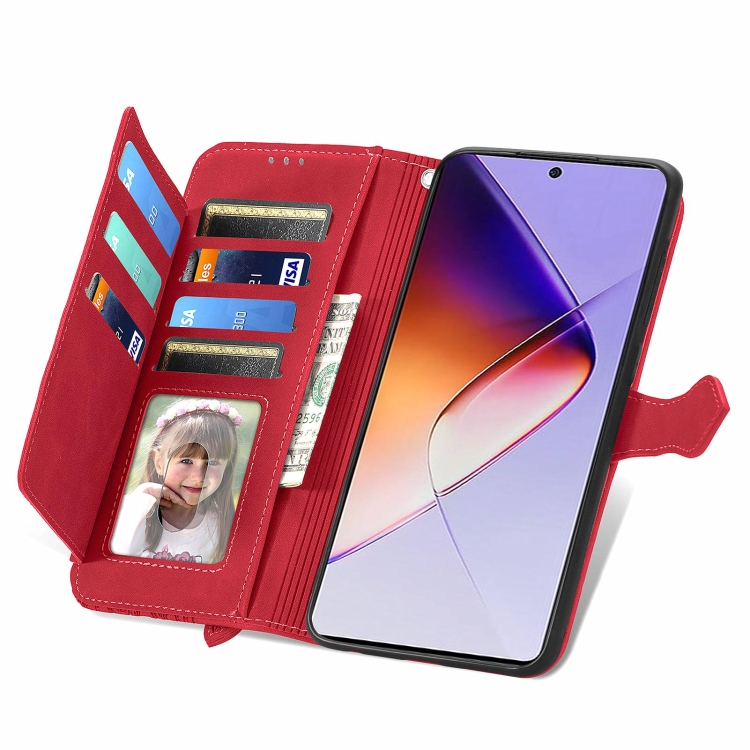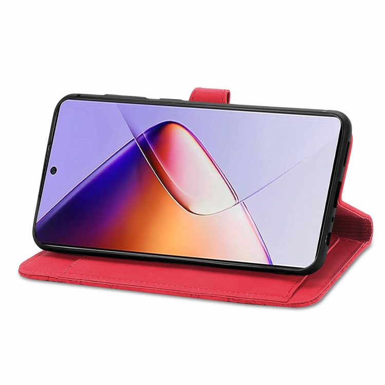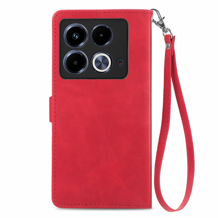 Funda de Cuero para Infinix Note 40 con Cremallera y Flores en Relieve (Rojo)