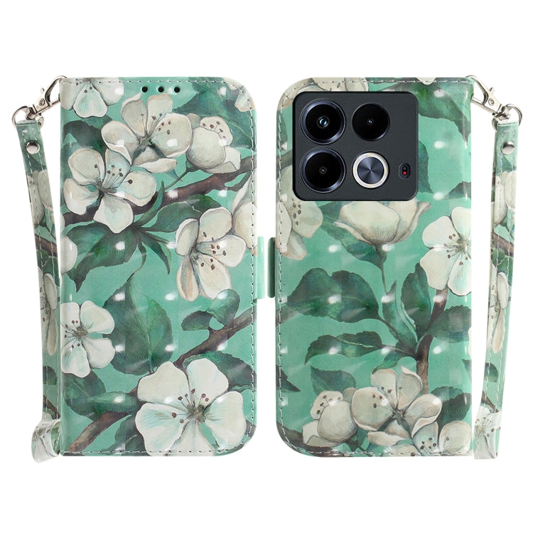 Funda de Cuero para Infinix Note 40 con Tapa Horizontal y Diseño 3D (Flor de Acuarela)